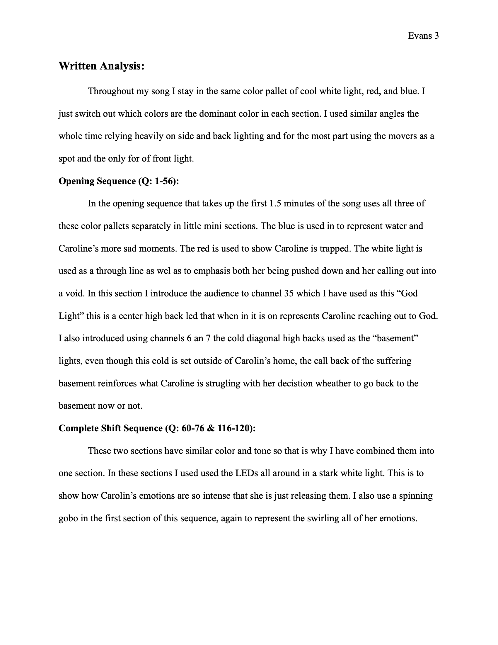Lighting Written Analysis