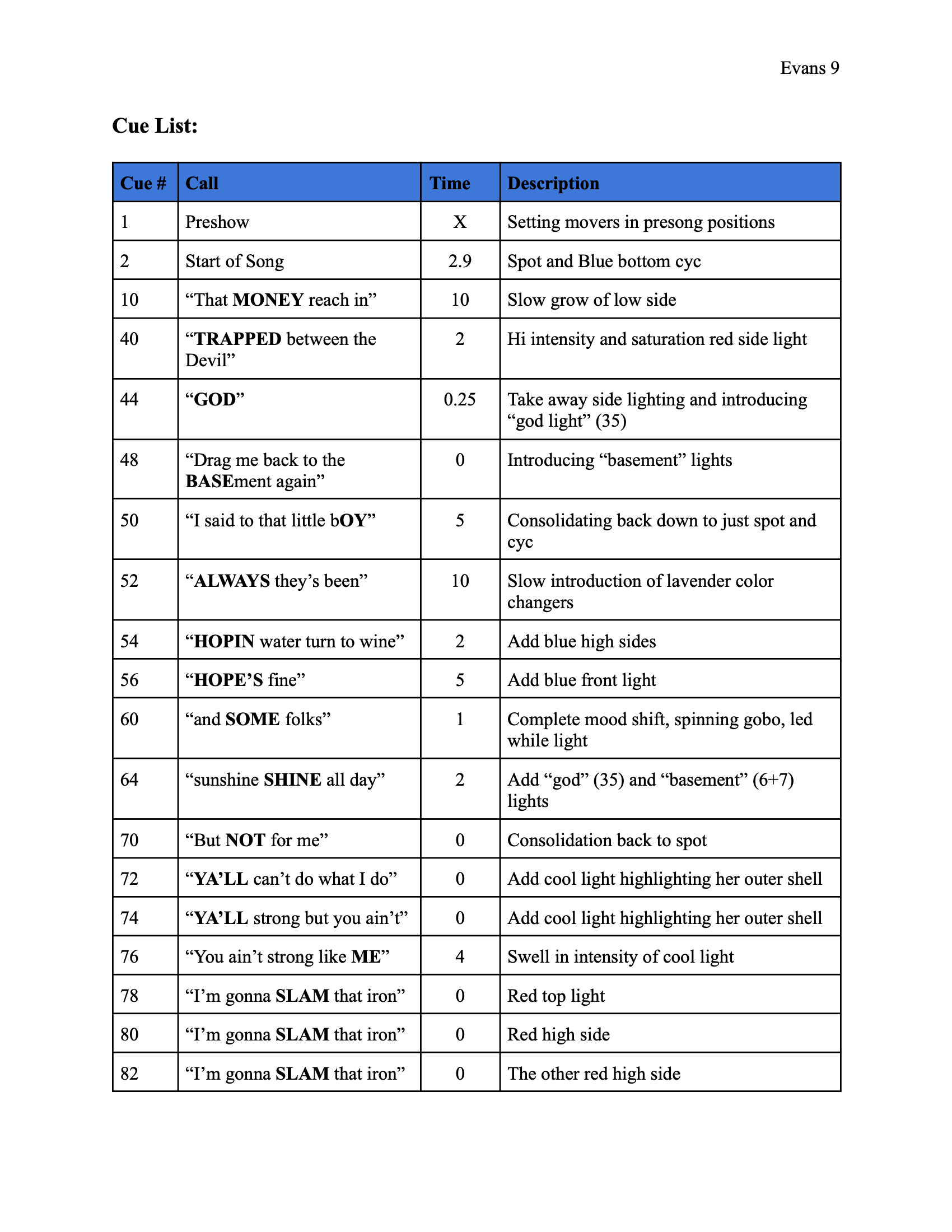 Final Cue Sheet